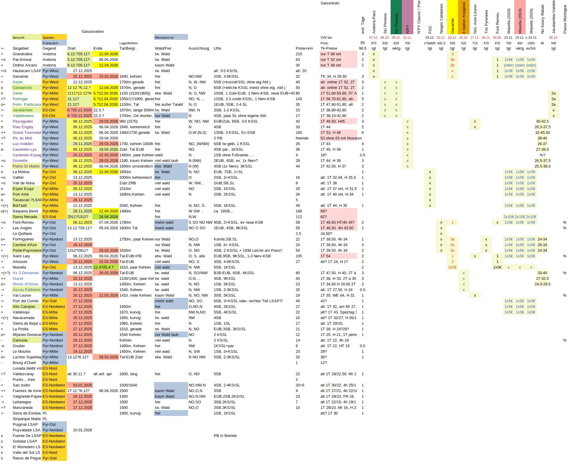 Hab heut gleich einmal angefangen, die Skigebiete in ES/FR durchzugehen, angefangen mit den Gebieten der beiden großen Saisonkarten…